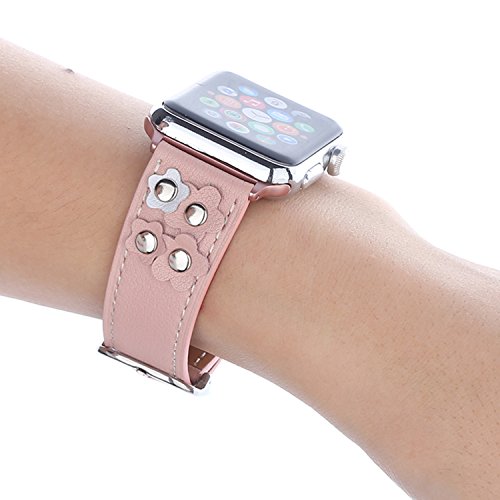 Sasairy, cinturino per orologio da polso da donna, fatto a mano in pelle con rivetti e decorazione floreale;