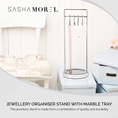 Sasha Morel - Portagioielli da appendere, in marmo, per collane, bracciali, chiavi e anelli, regalo di San Valentino per fidanzata (argento)
