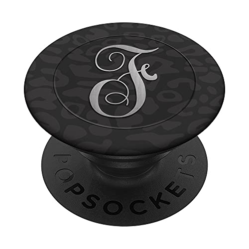 Sassy Black Mid Night Leopard Monogram Lettera iniziale F PopSockets PopGrip: Impugnatura per Telefoni Cellulari e Tablet Intercambiabile