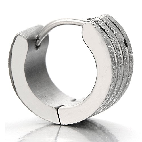 2 satinato Orecchini a Cerchio, Orecchini da Uomo Donna, Acciaio Inossidabile
