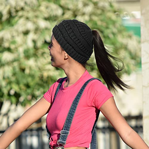 SATINIOR Berretto da Donna per Coda di Cavallo Cappello Nero Caldo in Maglia con Foro