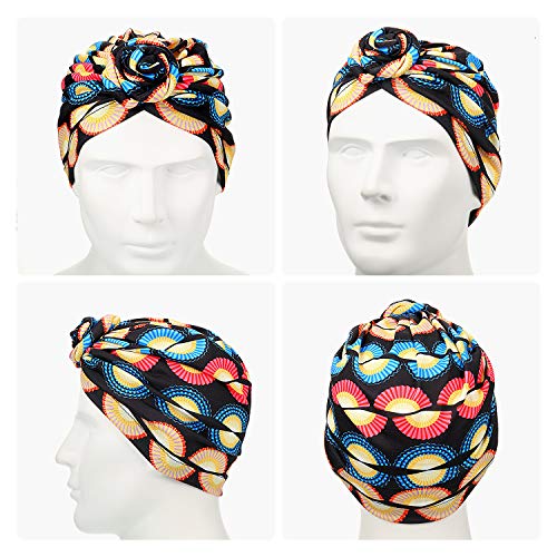 SATINIOR 3 Pezzi Africana Turbante Sciarpa Avvolge Testa Boho Turbante Elastico Annodato Berretto Cappello (Rosso, Nero e Giallo)