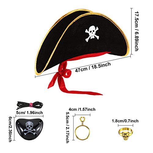 SATINIOR 6 Pezzi Cappello da Pirata Costume Teschio Stampa Cappello da Pirata con Benda Sull'occhio e Orecchino Pirata in Plastica per Halloween Masquerade Party Cosplay Cappello Prop