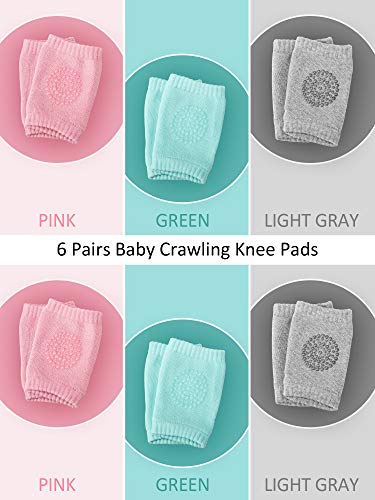 SATINIOR 6 Paia Strisciante Cuscinetti di Ginocchiere Antiscivolo Protezioni per Ginocchio Bambino Neonati Scaldamuscoli (Verde, Grigio, Rosa)
