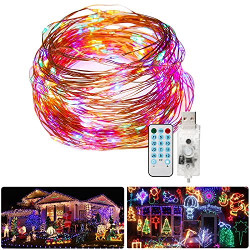 Satisure 20M Luci a Stringa, Luci Natale Esterno - Decorazioni Albero di Natale 200LEDs USB luci alimentate impermeabili con timer remoto per camera da letto, festa, matrimonio, Natale (multicolore)
