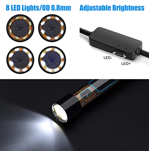 Nuovo aggiornato: 8 minuscoli LED bianchi regolabili, da fuori a piena luminosità. IP67 Sonda fotocamera impermeabile con diametro di 0,31 pollici, permette di esplorare le zone difficili da raggiungere.