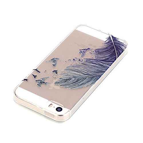 Saturcase - Custodia morbida ultra sottile in silicone gel per Apple iPhone SE 5/5S Beautiful Feather
