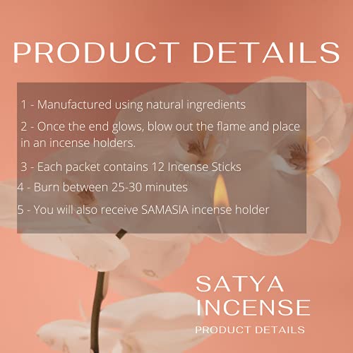 Satya Nag Champa - Bastoncini di incenso a forma di sangue di drago, confezione da 12, con porta bastoncini di incenso SAMASIA | utilizzati per dromatherapia, spa, yoga, matrimoni, meditazione,