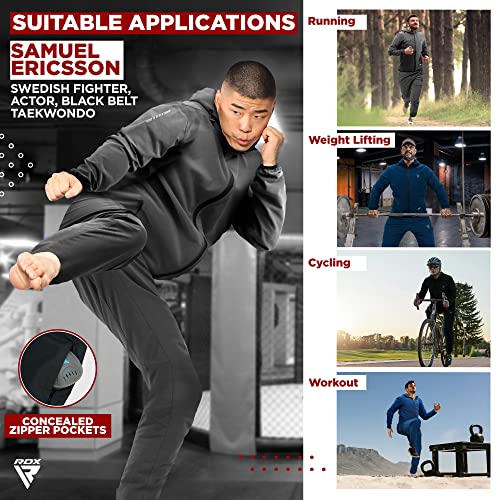 RDX Tuta Sauna Dimagrante Uomo Donna, Reach Conforme, Anti Rip Sudore Dimagranti Tute Cappuccio, Tuta per Sudare Tuta Termica Sports Boxe MMA Palestra Allenamento Top Pantaloni Set
