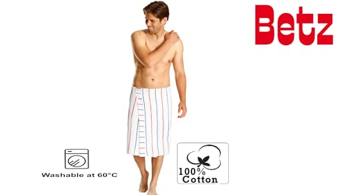 Betz Kilt da Sauna Maschile con Bottoni e Tasca, Colore: Bianco, Blu, Beige e Rosso, 100% Cotone Colore Bianco a Strisce