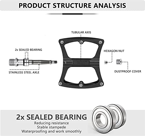 Cuscinetti DU: Con i cuscinetti DU, i pedali sono cuscinetti M S stabili e morbidi. Il di metro dell'asse è di 9/16", che facilita la pedalata. I cuscinetti sono sigillati per evitare che entrino polvere, quindi non possono entrare lo sporco