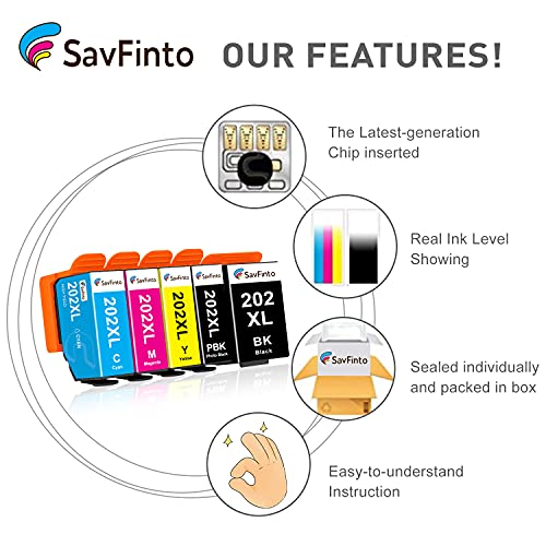 SavFinto 202XL Cartucce d'inchiostro Sostituzione per Epson 202 XL Compatibile con Epson Expression Home XP-6000 XP-6005 XP-6100 XP-6105