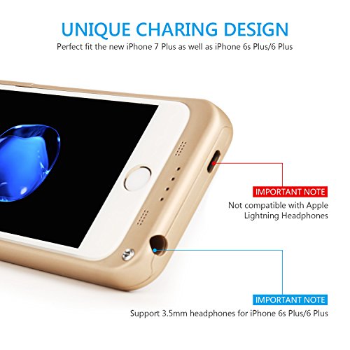 SAVFY 4800mAh Custodia Cover Protettiva con Batteria Esterna per iPhone 6 plus/ 6s plus/ 7 plus 5.5'', Cover batteria Power Bank con batteria integrata, Backup Battery Charger Case Oro