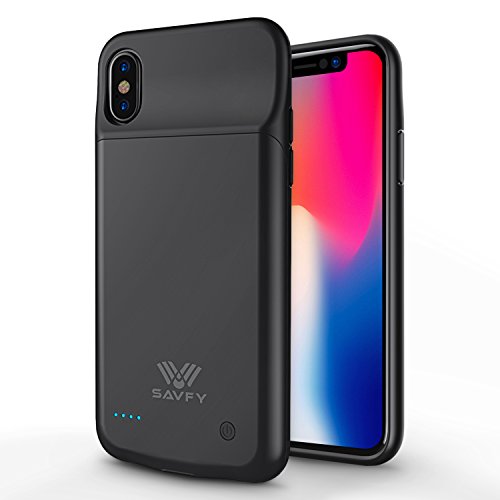 SAVFY Cover Batteria iPhone X, 3200mAh Custodia Cover Protettiva con Batteria Esterna Integrata per Apple iPhone X Battery Charger Case (Nero)