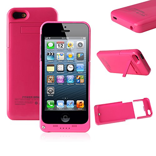 SAVFY Custodia Cover Protettiva con Batteria Esterna per Apple iPhone 5/5S, Cover batteria da 2200mAh, Power Bank con batteria integrata, Backup Battery Charger Case Rosa