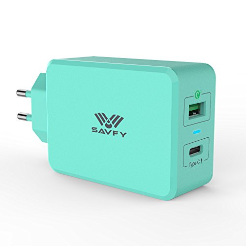 SAVFY Quick Charge 3.0, [Certificato Qualcomm] Caricatore USB Caricabatterie da Muro 33W, Alimentatore da Parete con Due porte USB & Type C per Samsung, LG, Nexus, iPhone e altri Smartphone (Blu)