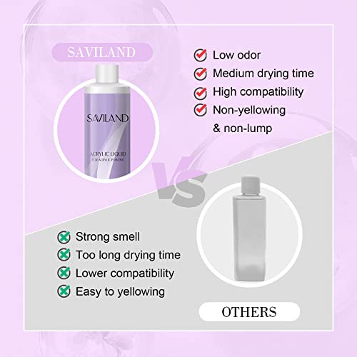 Saviland 500ml Monomero per unghie acriliche - Liquido acrilico per polvere acrilica EMA formula, liquido monomero acrilico, non ingiallimento per estensione unghie e intaglio