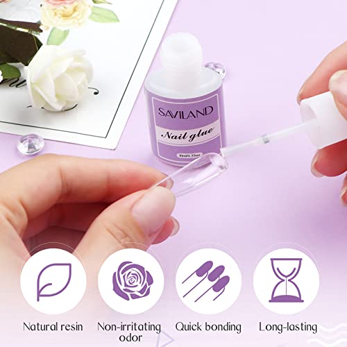 Saviland Colla per unghie - 10 ml di colla per unghie acriliche pennello professionale su colla per unghie finte per unghie finte, premere sulle unghie colla rapida e forte per nail art