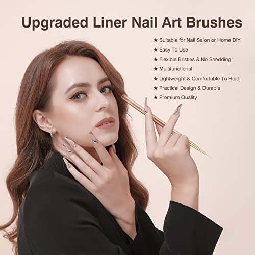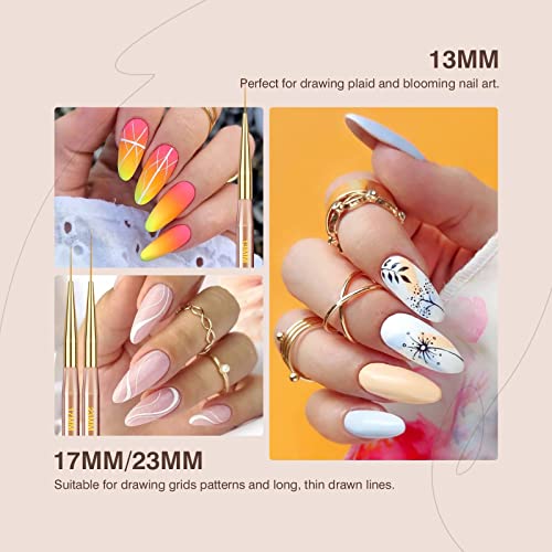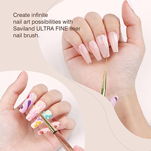 Saviland Pennelli per nail art - 5 pennelli per nail art per nail art U V gel pennello per unghie per linee lunghe, dettagli, design raffinato, per salone di unghie, taglia 7/9/13/17/23 mm