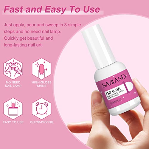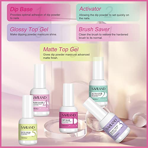 Saviland Dip Powder Liquid Set - 9pcs Nail Dip Liquid Set with Dip Base Activator Glossy & Matte Top Coat Brush Saver Dipping Powder Essential Manicure Tools Kit per Nail Art Home DIY & Salon