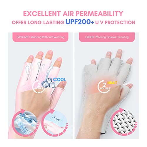Tessuto morbido e liscio di prima qualità: i guanti Saviland rosa senza dita U V per unghie in gel sono realizzati in tessuto lycra con 80% nylon 20% spandex, alta elasticità, riutilizzabili, morbidi, lisci, leggeri, ad asciugatura rapida, traspiranti e comodi da indossare.