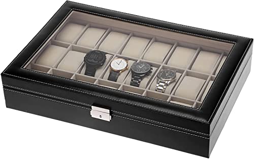 Savingplus 6/10/12/20/24 in ecopelle orologio display Storage box gioielli in vetro top di