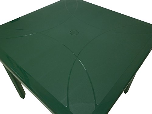 SF SAVINO FILIPPO Tavolo tavolino Quadrato 80x80 Nettuno in Dura Resina di plastica Verde con Foro per ombrellone per Esterno casa Balcone Bar sagra da Giardino