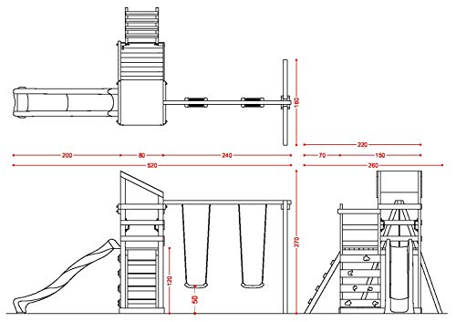 SavinOutdoor Parco Giochi in Legno Torre Doppia Standard con Tetto + Arrampicata + Altalena con 2 sedili Liberi