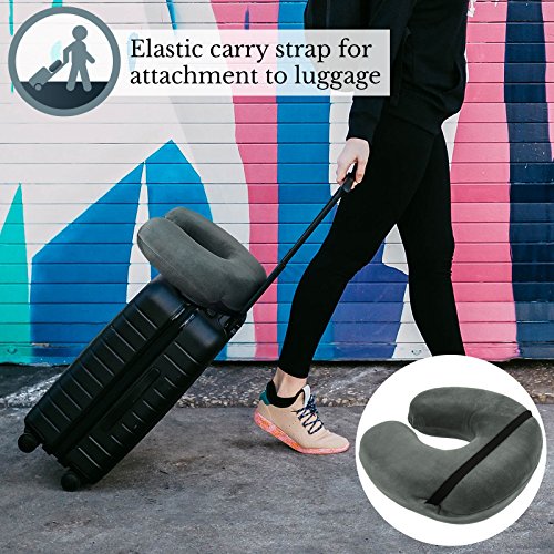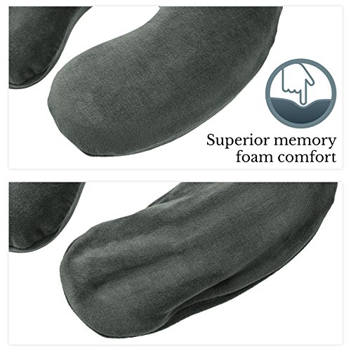 Savisto Cuscino da Viaggio Memory Foam con Tappi per le Orecchie Lavabili | Cuscino da Viaggio e Supporto Aereo, Auto e Treno, Lettura & Sollievo dal Dolore al Collo - Grigio