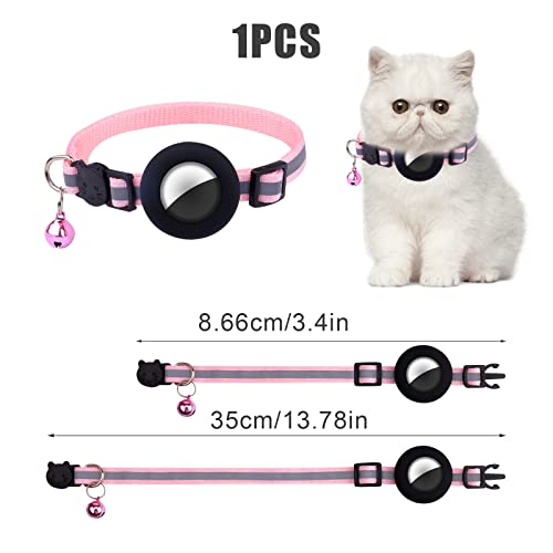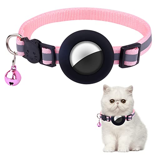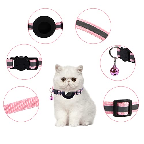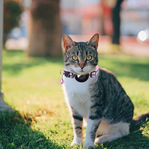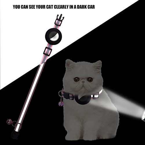 SAVITA Collare per Gatti, Collare per Animali Domestici a Scomparsa Cat Collar Regolabile Riflettente con Campana e Supporto per Airtag Impermeabile in Silicone, Accessori per Gatti di Gatto (Rosa)