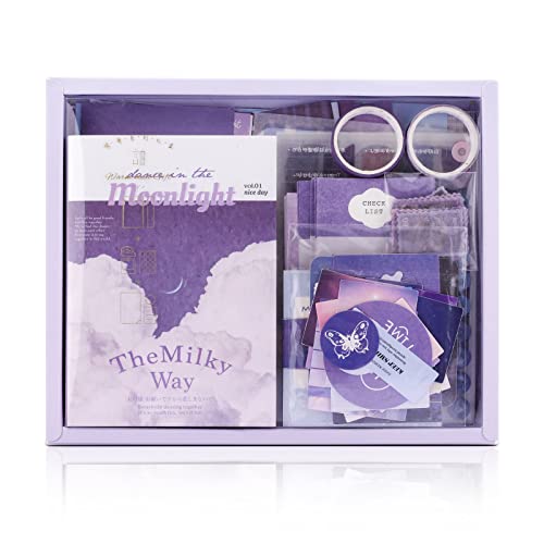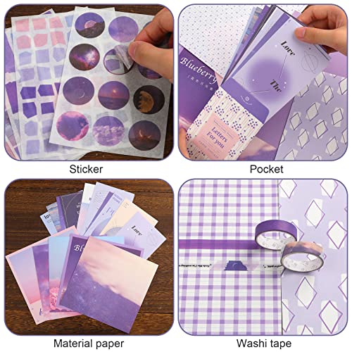 Astetico e fantastico: il scrapbooking kit completo con tape è in stile estetico viola.Soprattutto la carta e gli adesivi degli album sono pieni di elementi estetici, tra cui cielo, montagna, mare ed ecc., Fantastico e bello da soddisfare le tue esigenze fai -da -te.È un ottimo aiuto per i principianti di scrapbooking.