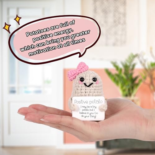 SAVITA Patata Positiva Divertente, 7,6cm Carina Funny Positive Potato Mini Patata Positiva Divertente con Incoraggiamento Stile con Fiocco per Donne per Natale Compleanno San Valentino