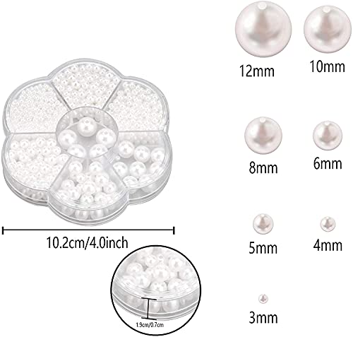 SAVITA 1150 Pezzi 3/4/5/6/8/10 /12mm Perle Rotonde Bianche Perline Raso Perline Distanziali Sciolte per Fai Da Te Collane Braccialetti Orecchini Anelli Creazione di Gioielli per Bigiotteria