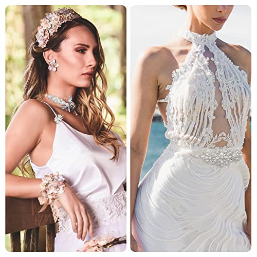 SAVITA 7 Pezzi Applique con Strass, Lucidi Applique con Strass per Abito Sposa Applique da Sposa in 3 Stili Toppa Termoadesiva Strass per Abito da sposa Scarpe Capelli Accessori (Argento)