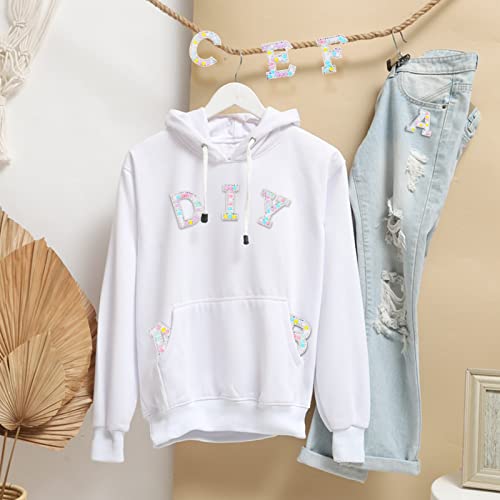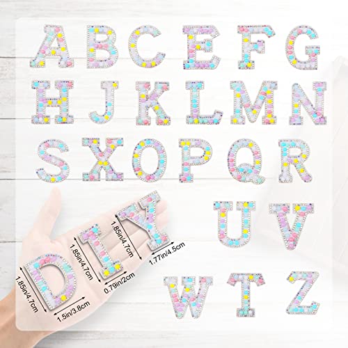 SAVITA 26 pezzi Lettere Termoadesive Ricamate, Lettere Termoadesive per Tessuti con Strass Perla per Vestiti Giacche Pantaloni Cappelli Borse Progetti Artistici (A-Z, Colore Misto Carino)