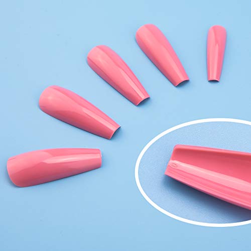 SAVITA 100 Pezzi Lunga Pressione Sulle Unghie Unghie Finte Artificiali Acriliche Unghie Finte a Copertura Totale per Nail Art Forniture per Salone per Unghie (Rosa)
