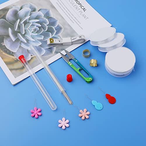 SAVITA 41 Pezzi Set di Aghi per Perline , Acciaio Inossidabile Ago per Perline Leggero con Corda Elastica Trasparente per Bracciali Collane, Anelli per il Cucito Fai Da Te