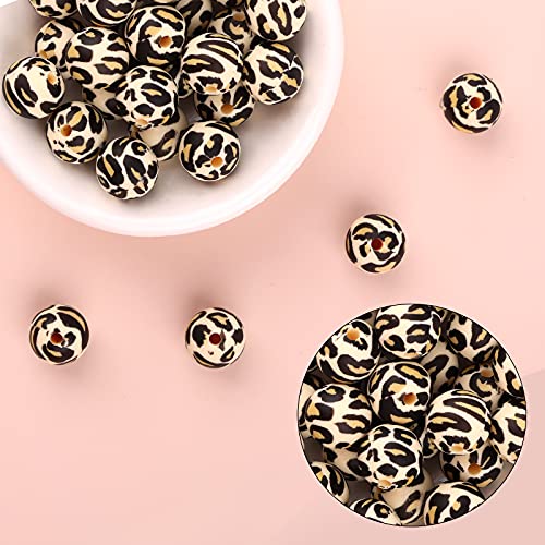 SAVITA 40 Pezzi Perline in Silicone Leopardo Perline Rotonde Distanziatori Accessori per Creazione di Gioielli per Bracciali Cordini collana Gioielli Fai da Te (12mm)