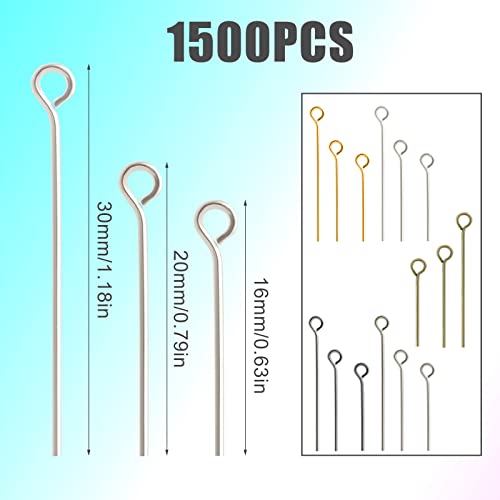 SAVITA 1500 Pezzi Perni per Occhi, 16/20/30mm Eye Pins Orecchini in Acciaio per la Creazione di Gioielli Forniture di Gioielli Chiodini per Orecchini Fai Da Te Bracciali (5 Colori Assortiti)