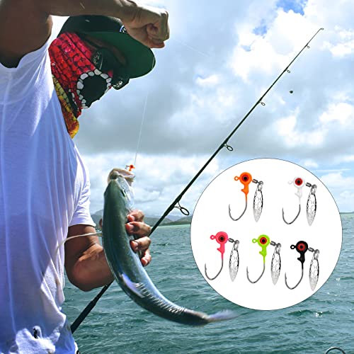 Look speciale: questi ganci da pesca colorati sono progettati con squisiti occhi rossi e fogli di foglie metallici, sembrano molto fantastici.La foglia di metallo leggera può riflettere la luce quando ruotando in acqua, che può inviare efficacemente l'interesse dei pesci e attirarli a venire.Con le nostre teste jig di pesca, puoi goderti completamente il divertimento della pesca.