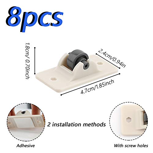 Contenuto della confezione: riceverai 8 ruote autoadesive.Ogni ruota in plastica misura 4,7 x 2,4 x 1,8 cm.quando vengono utilizzate quattro ruote contemporaneamente, la capacità portante è fino a 8 kg.