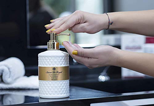 Efce lavaggio a mano quotidiano: Sicuro e altamente efce. Le tue mani hanno un odore piacevole con i suoi profumi di lunga e piacevoli contenenti fiori di giglio e mandarino dolce alle note di testa, muschio e vaniglia nelle note di fondo. Il sapone liquido Savon De Royal Pearl dona ai tuoi bagni un look sofisticato con la sua confezione elegante ed elegante.