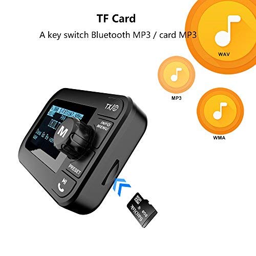 Trasmettitore FM Bluetooth: l'ultima versione 4.2 Bluetooth, connessione stabile, funzionamento regolare con basso rumore e migliore qualità del suono. Quando si risponde a una chiamata, lo schermo visualizza il numero e la durata della chiamata in arrivo. Dopo la chiamata può tornare alla modalità precedente. Le chiamate telefoniche e in vivavoce sono supportate dopo l'impostazione.