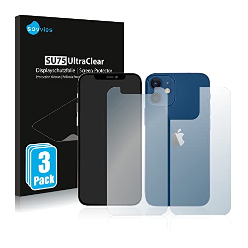 Savvies 6-Pezzi Pellicola Protettiva Compatibile con Apple iPhone 12 Mini (Fronte+Retro) Protezione Schermo Trasparente