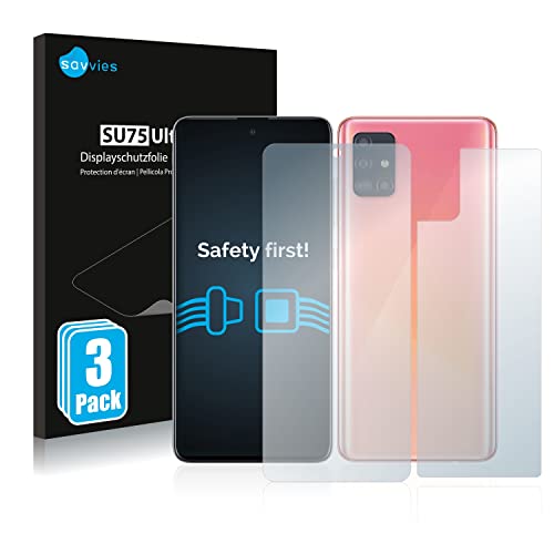 Savvies 6-Pezzi Pellicola Protettiva Compatibile con Samsung Galaxy A51 5G (Fronte+Retro) Protezione Schermo Trasparente