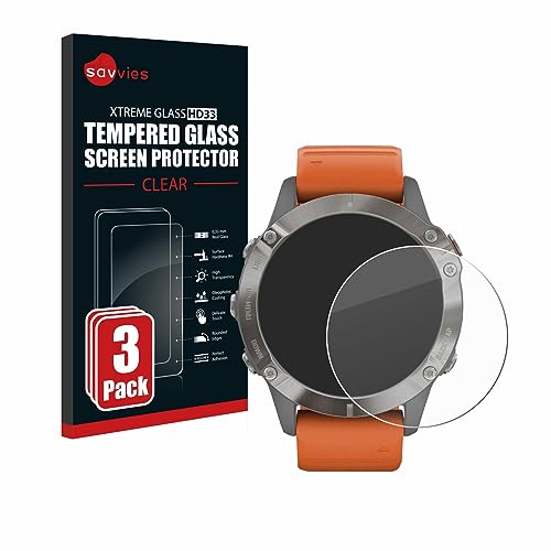 Savvies Pellicola Vetro Temperato compatibile con Garmin Fenix 6 Pro Solar (3 Pezzi) Protezione, Schermo Protettivo, Glass Durezza 9H