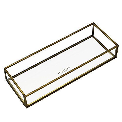 By Savvy' Brass Metal and Glass Narrow Open Tray for Stackable Storage or Jewellery to Stack with 'Orangery' Trays or Lid by Savvy Trays