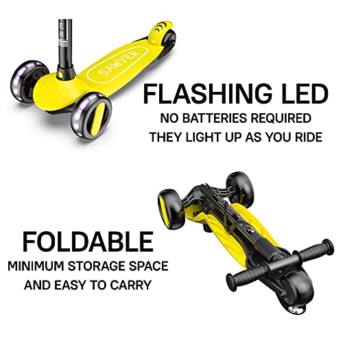 Sawyer Bikes - Monopattino Regolabile a Spinta a 3 Ruote - Bambini 2 a 8 Anni (Giallo)
