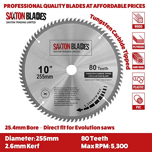 Saxton TCT - Lame per sega circolare per legno, 255 mm x 40 e 80 T x 25,4 mm, per seghe Evolution Rage (confezione da 2)