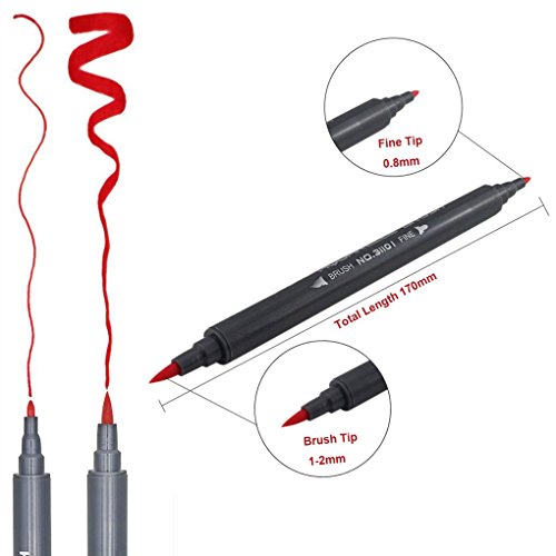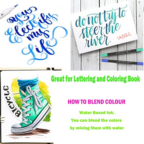SAYEEC 24 Colours Dual Tip Brush Pens with Fineliner Tip Art Marker Soft Flexible Tip Durable Create Watercolor Effect - Best for Adult Coloring Books/Manga/Comic/Calligraphy